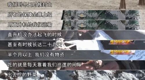 夏季洪流频发,冬季大雪封山。当年,食物补给也成问题,战士孙伟强回忆,有时候甚至长达20几天的时间里,只能吃野菜,因为直升机过不来。