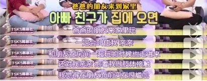 若亲子间的边界一再模糊,那么道德与不堪就只有一线之隔。韩国一档综艺节目hello里,有一位父亲就做着这样的事。父亲总会亲女儿,不仅在外人面前牵手走路,不经过同意就帮她们洗澡、偶尔还总是摸她们的屁股......这些行为不只是在家里,在外面偶尔也会出现,这经常会引来异样的眼光。而且朋友来家里,父亲也不会收敛,一样做一些让人尴尬的肢体触碰。有时候就因为太过亲密,加上父亲结婚早又比较年轻,父女俩总会被外人误会成情侣。女儿也曾明确和父亲说不要这样子做,但他却认为“你是我的女儿,你的身体也是我的。“我和朋友在房间玩,他也会进来,抱着我做肢体接触,在朋友面前实在很尴尬……