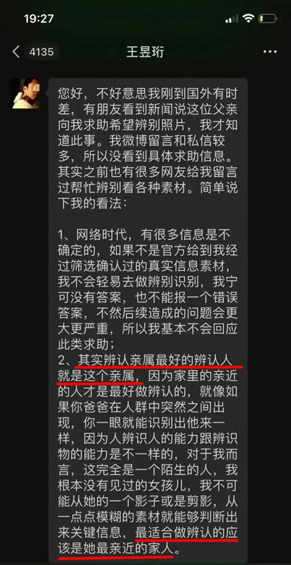 但是却被拒绝了,因为王昱珩认为,对一个人的辨认,最好的辨认者其实就是这个人最亲的亲属,最亲近的人才是最容易辨认的。