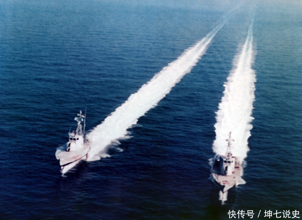 4艇编队的鹞鹰级水翼导弹艇飞驰而来,这是比较罕见的照片之一。