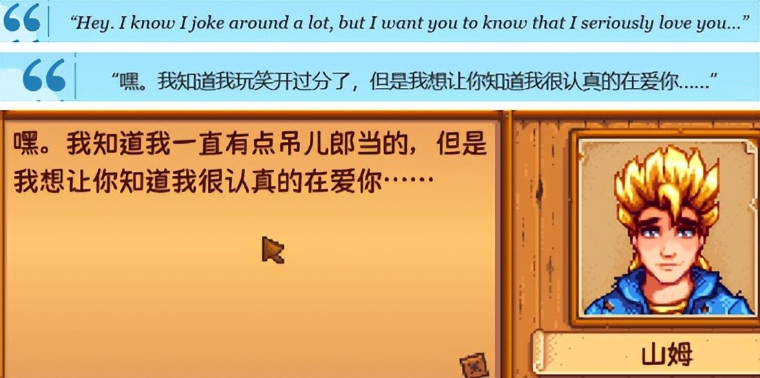 另一位男性NPC山姆也同样出现了这样的问题。在原英文描述下,可以看到山姆的性格是个特别开玩笑的人,但最新的翻译文本则说他有些“吊儿郎当”,多了点小混混的感觉。