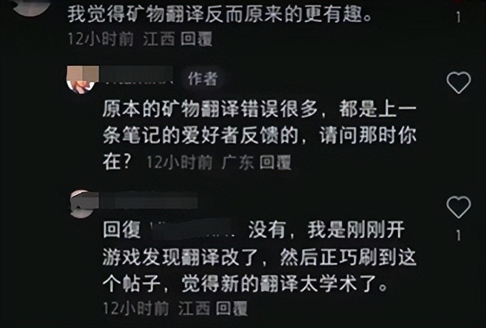 除了上面这位言辞傲慢的翻译组成员之外,有网友还扒出了该翻译组另一名翻译成员。这位成员曾在小红书这个单一的平台收集了玩家认为此前游戏中存在翻译错误的名词,并且根据这些玩家的意见,在新版本中一一进行修改。
