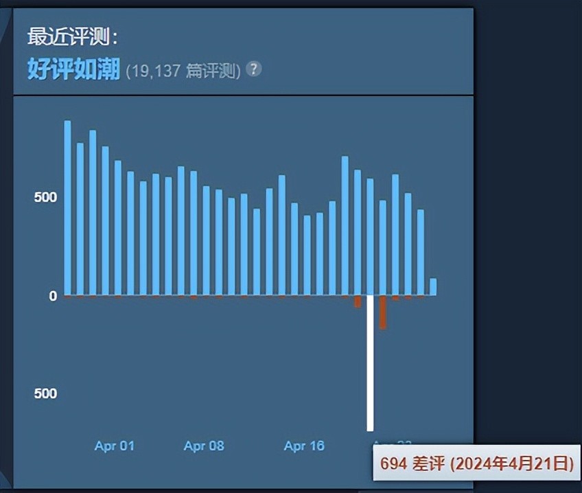 在版本更新后的几日,游戏的风评就直线向下,玩家们纷纷在steam界面中发泄对游戏的不满,最多的一天能有近700条差评。