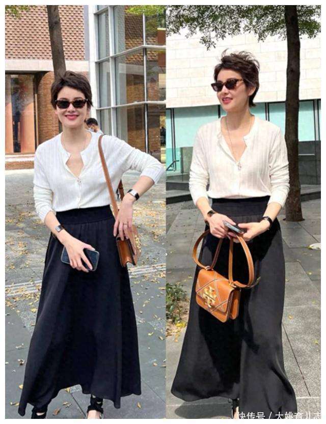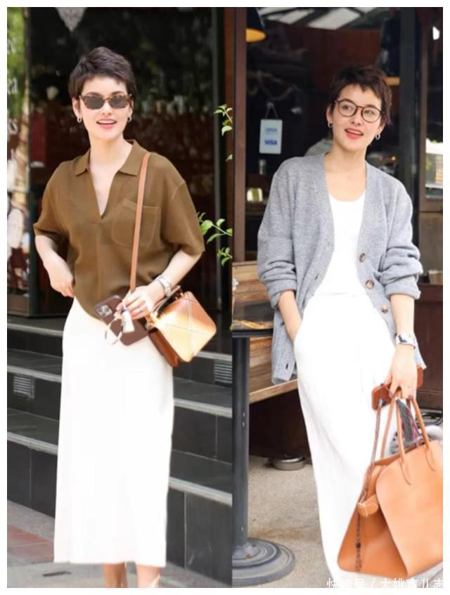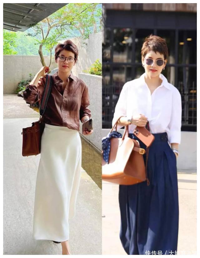 ?????? 穿基础款要懂得营造出随性范,飘逸灵动的半身裙,搭配一个宽松版型的衬衫,舒适又大气。阔版设计的压褶半身裙,搭配白衬衫,简约还大方,怎么穿都好看。