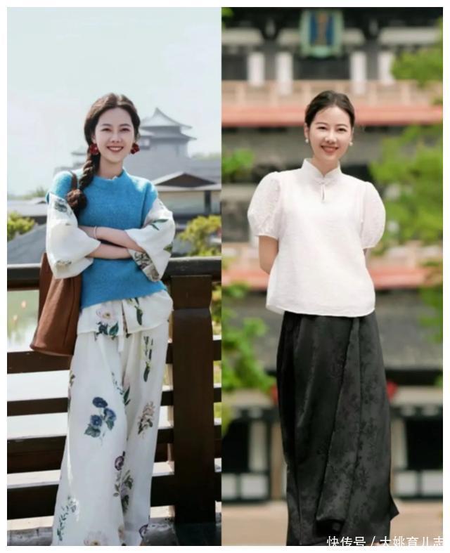 ?????? 建议大家还可以多尝试一下套装裙,比如印花图案的套装裙,叠穿纯色针织马甲,时尚又典雅。或者是白色衬衫和印花半裙的搭配,也能轻松拿捏好气质。