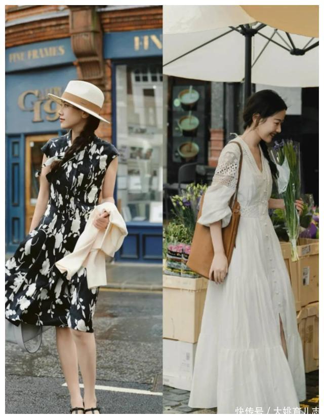 ?????? 碎花裙在基础款当中,是属于比较有设计感的单品。加入了印花图案的连衣裙,一定要适当的留白,通过V领设计露出锁骨,过膝裙摆露出小腿线条,搭配上平底鞋也好看。