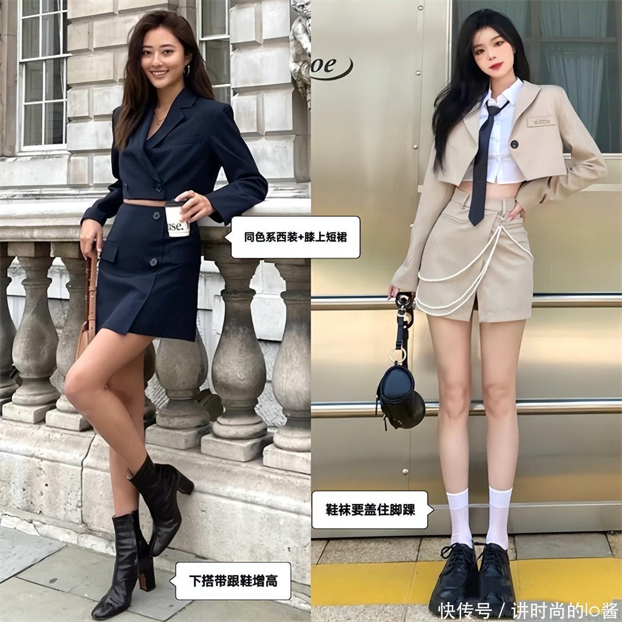 搭配公式【1】短西装搭配“同款短裙”