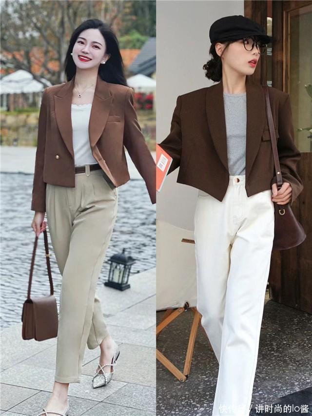 对于追求简约风格的女性而言,短西装搭配烟管裤是非常合适的选择。烟管裤的直筒设计带来一种英伦复古的学院风,而短西装则提供了必要的正式感,两者结合即现代又不失格调。
