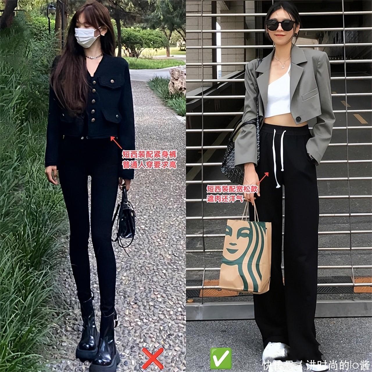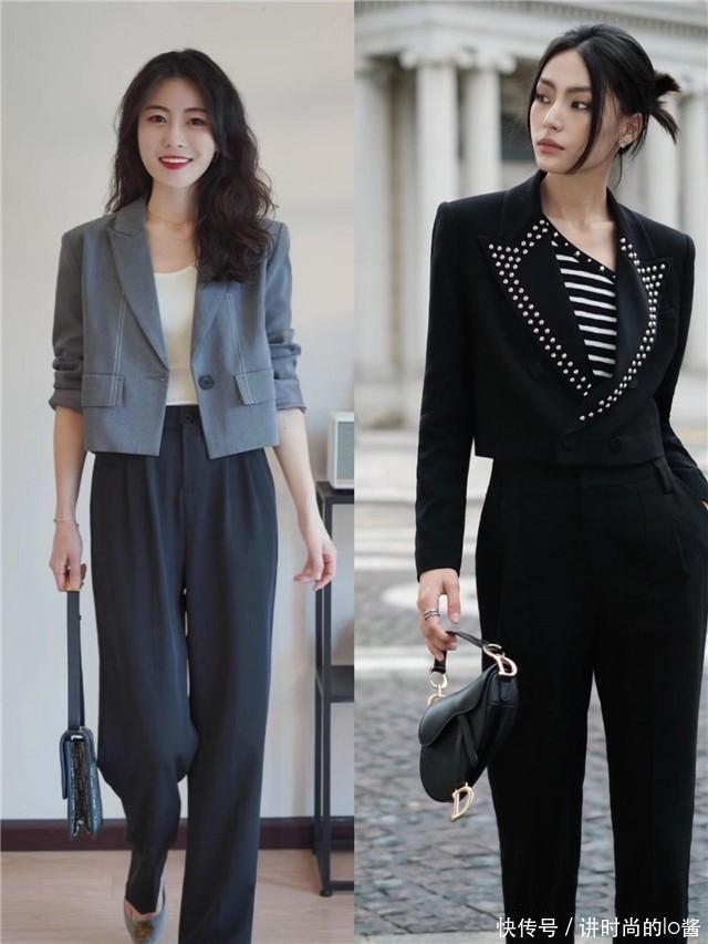 搭配公式【1】短西装搭配“烟管裤”