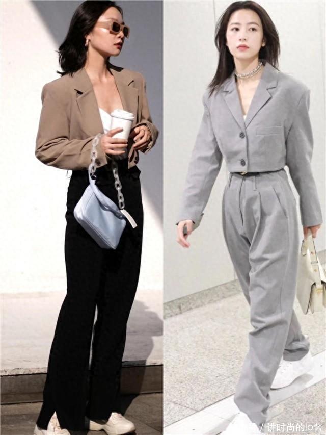 最后,如果你希望塑造一番轻松但充满职业气质的日常装扮,那么浅色直筒裤与短西装的组合值得一试。