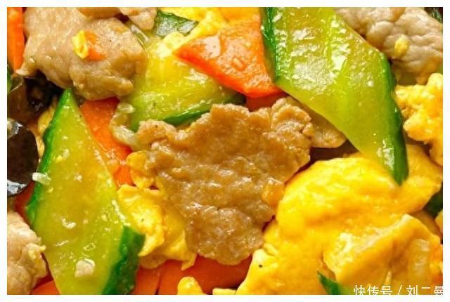 ?????? 6、锅中油热,放入蒜末炒香,再胡萝卜、黑木耳和黄瓜翻炒一会儿,炒至断生后,倒入鸡蛋和瘦肉,加入食盐、生抽、蚝油和水淀粉,翻炒均匀炒至入味即可出锅装盘开吃。