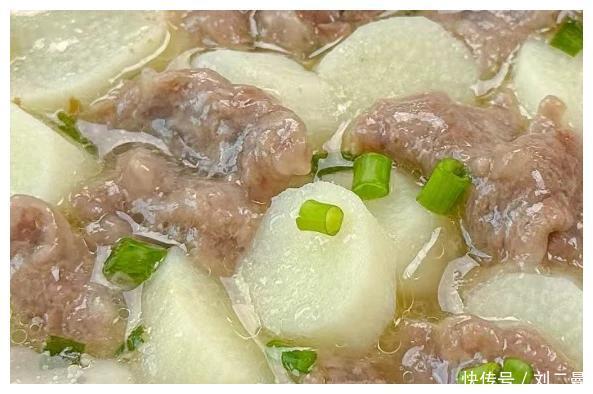 ?????? 4、接着放入牛肉煮三分钟煮熟,最近加入食盐调味,撒上葱花即可出锅开吃。