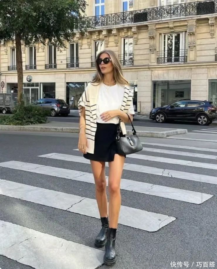 白T+黑裙的组合在大的方面基本不会出现任何错误,但要想两件单品搭配能呈现出高级美感,很多小细节都需要注意下!