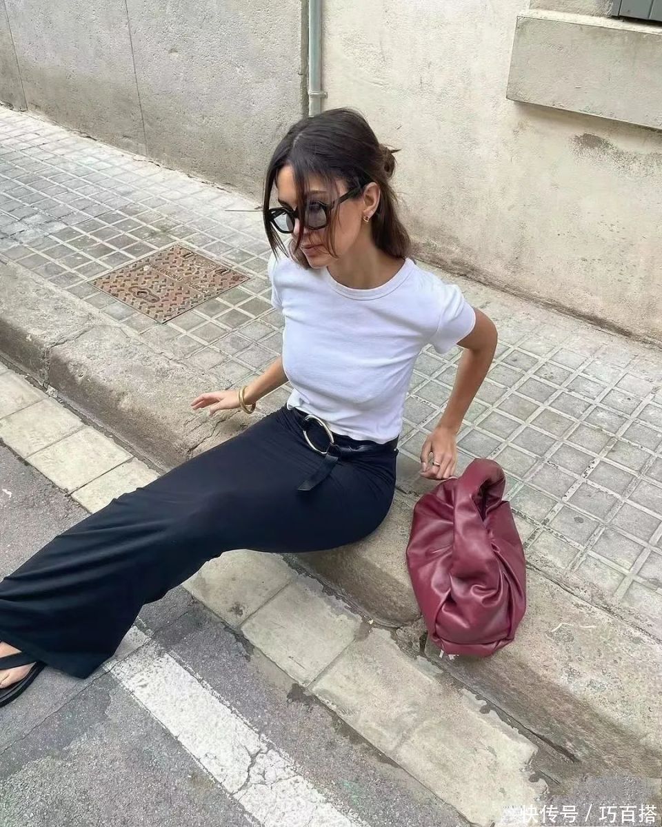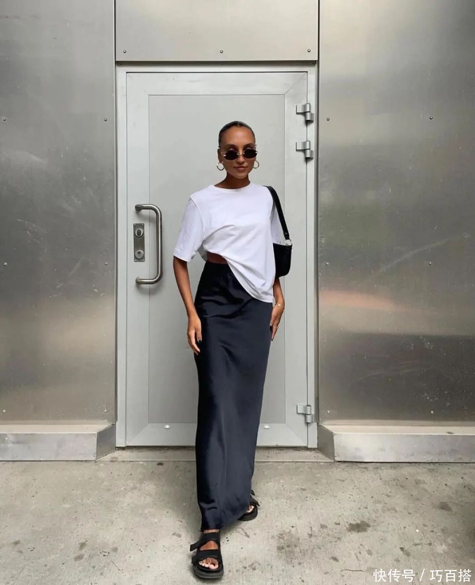 白T的经典流行还体现在它搭配能力出众上,这其中和黑裙搭配最有氛围,经典黑白配干净利索,色系经典基础简约,视觉不会产生疲劳,氛围感不会掉线,搭配方面更没有隐藏陷阱。