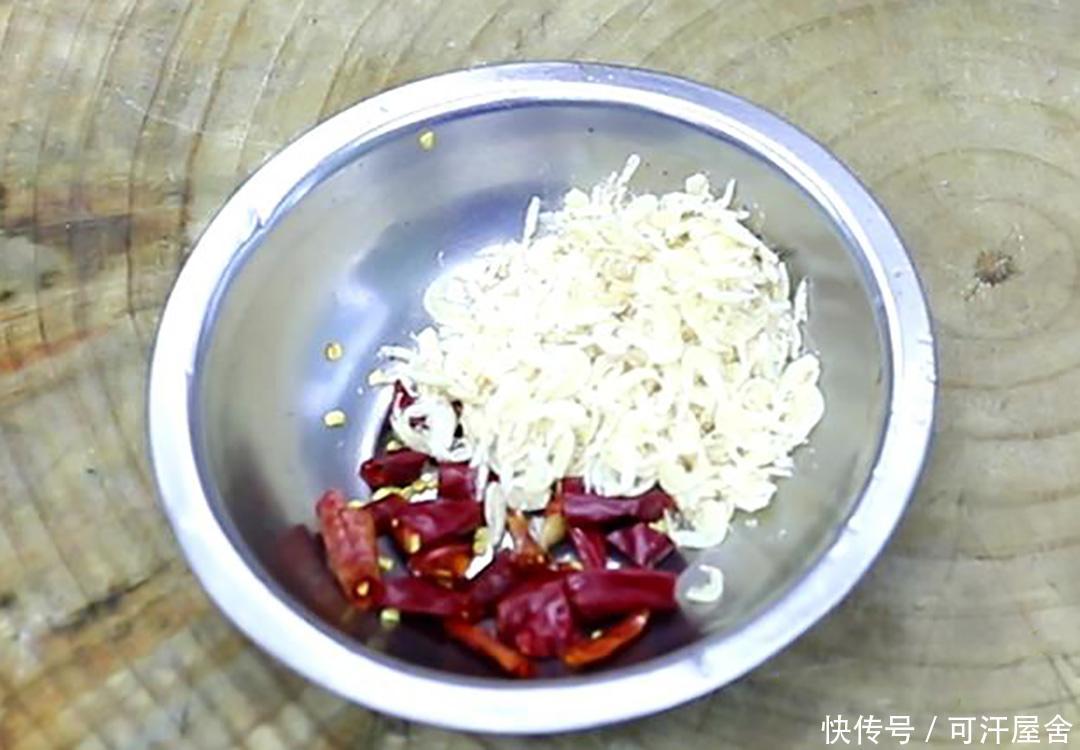 1.准备一小把大蒜,拍扁切成蒜末;几个干辣椒切成段,再放入一小撮虾皮备用。