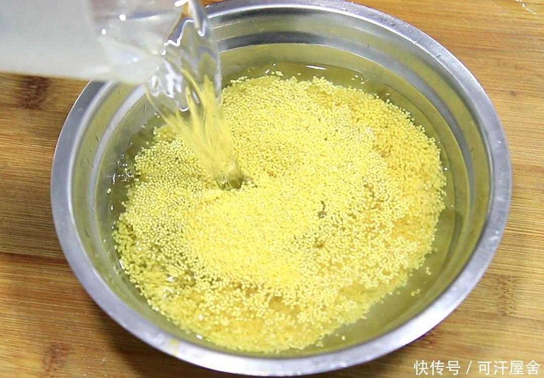 1.准备一把小米,淘洗干净以后用清水浸泡10分钟,浸泡过的小米熬的时候更容易熟透。