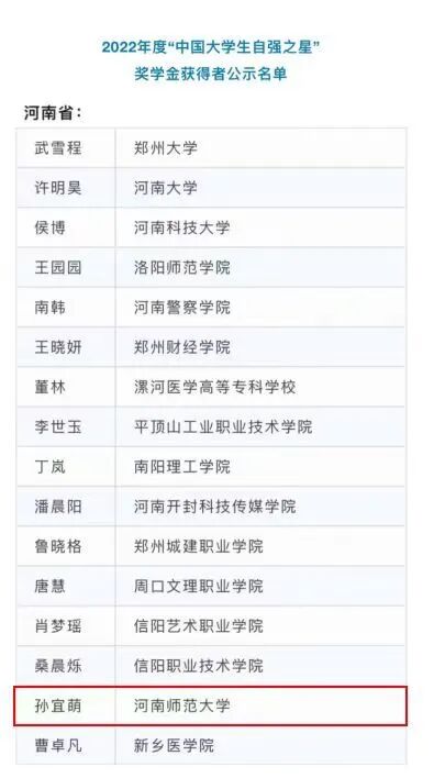 学院学生孙宜萌获2022-2023年度“中国大学生自强之星”
