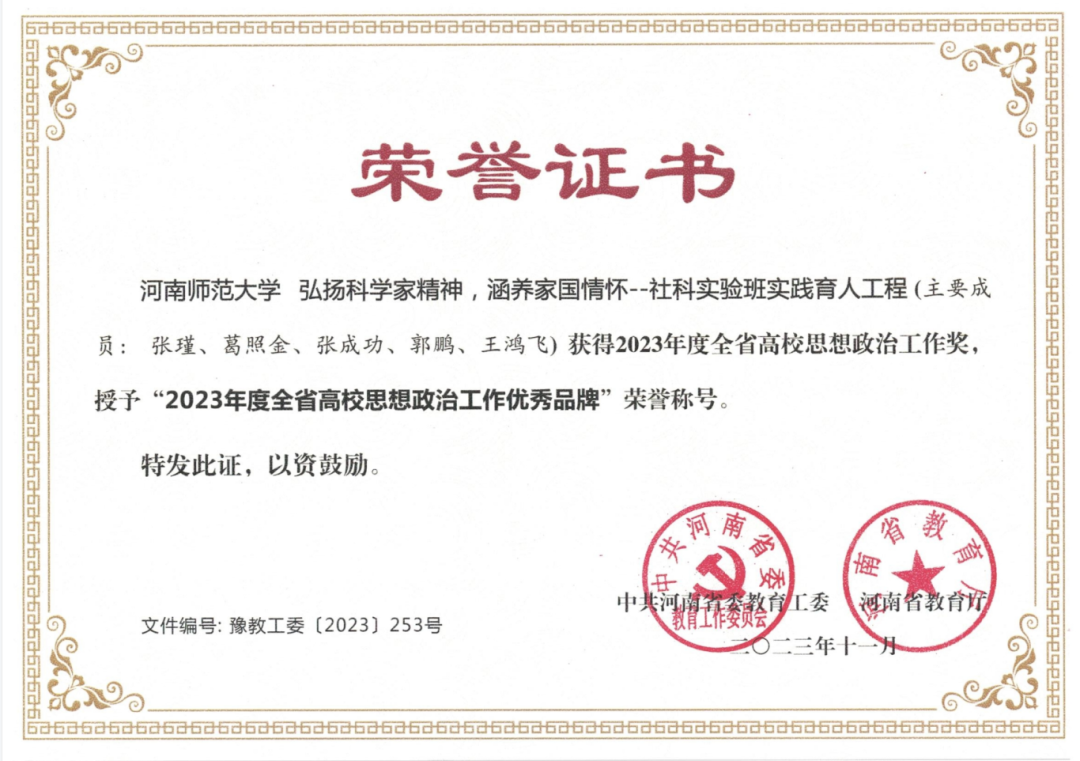 河南省中国特色社会主义理论体系研究中心、河南省文化产业研究基地、河南师范大学科技与社会研究所、公共政策与社会管理创新研究中心、统一战线理论与实践研究中心5个省级重点人文社科研究基地