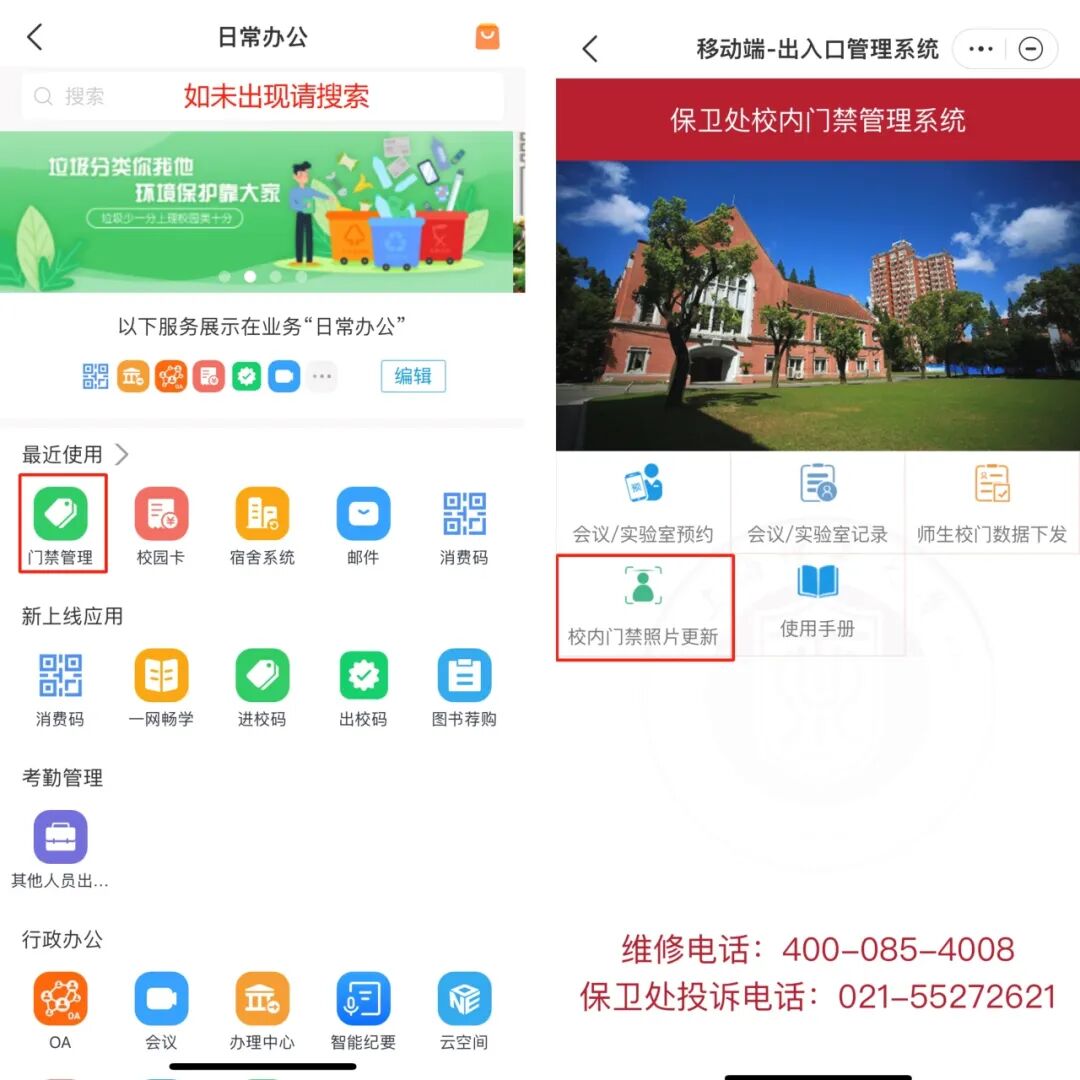 具体操作如下:Welink-业务-搜索栏搜索“门禁管理”-校内门禁照片。