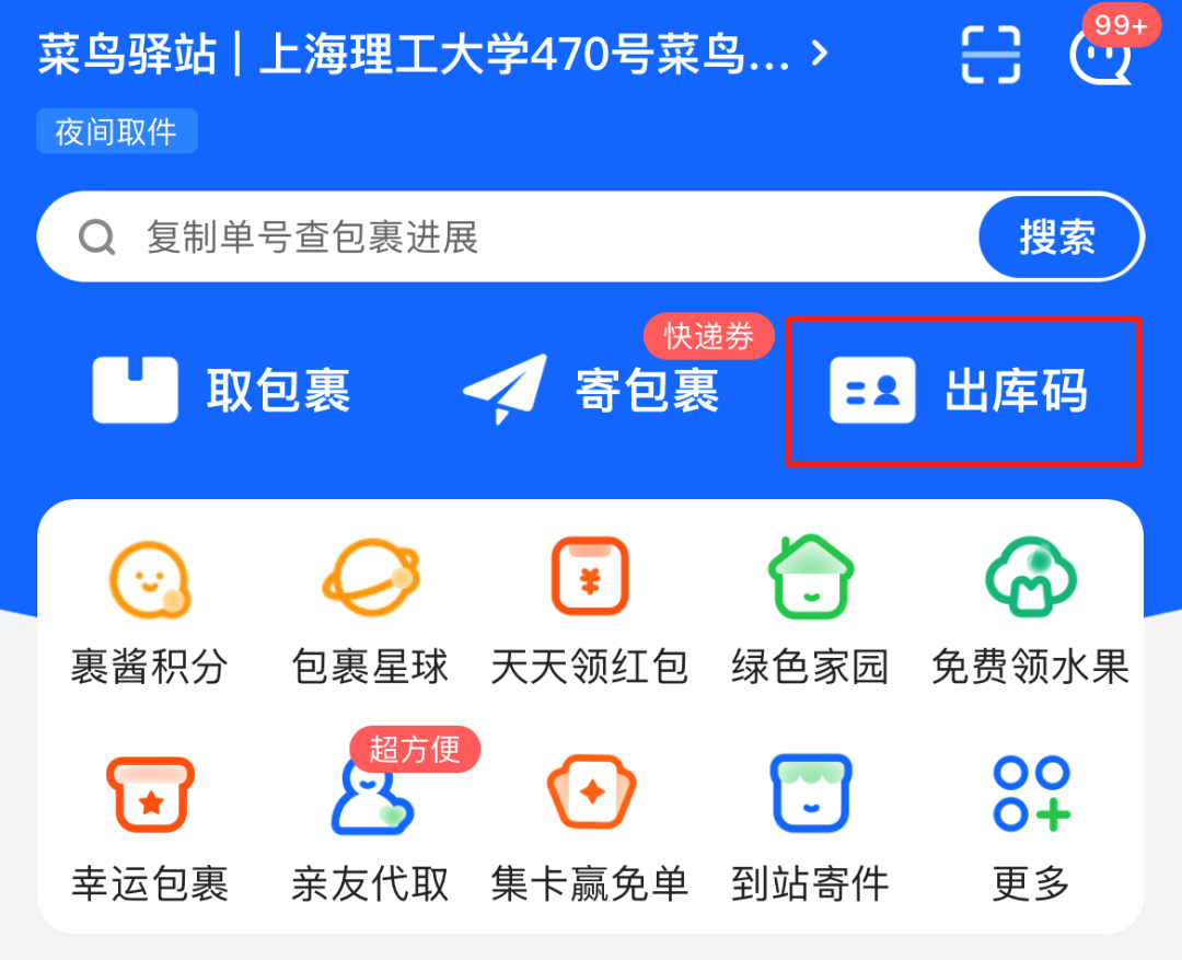 1、军工路470号大门进来直走右手边菜鸟驿站(2公寓1号楼西侧)